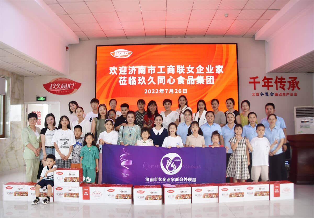 7月26日,濟南市工商聯(lián)女企業(yè)家商會蒞臨山東玖久同心食品集團濟南生產(chǎn)基地,進行企業(yè)走訪參觀交流活動。為了增加商會女企業(yè)家們交流的機會,也為了響應(yīng)國家培養(yǎng)孩子動手實踐能力的號召,玖久同心集團特舉辦此次活動,并設(shè)置親子互動環(huán)節(jié),讓小朋友們體驗自己動手學(xué)做面點。